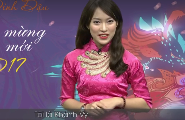 Khánh Vy diện áo dài truyền thống khi làm MC cho VTV7 trong số Tết. Vẻ ngoài xinh xắn cùng lối dẫn tinh nghịch, trẻ trung của Khánh Vy khiến chương trình ngập tràn sắc xuân. Cô giới thiệu đến người xem 2 loại hoa truyền thống trong ngày Tết Việt là hoa đào và hoa mai. Tất cả nội dung đều được cô nàng nói bằng tiếng Anh.