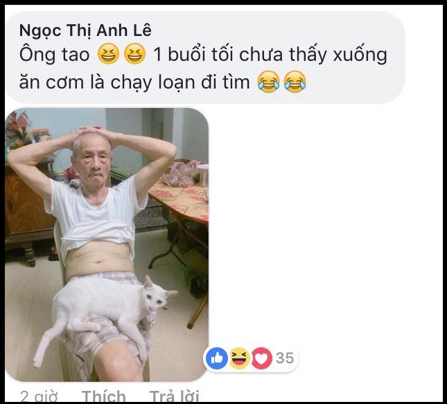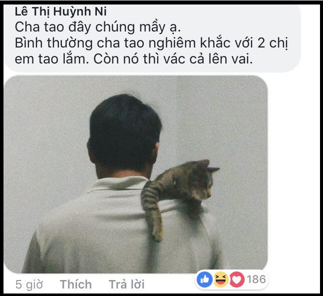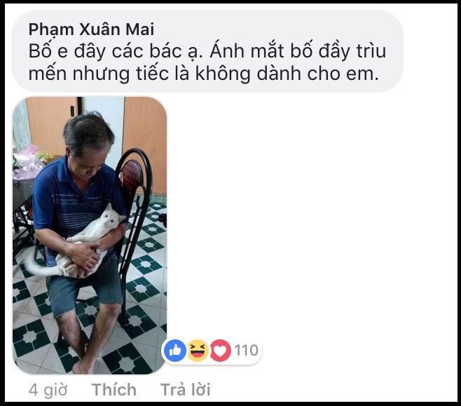 Mới đây, lại thêm một topic ”kể tội” bố mẹ nữa. Tất cả bắt nguồn từ tấm ảnh một ông bố ôm thật tình cảm một con mèo vào lòng do bạn Đào Ngọc chia sẻ. Cô viết: ”Bố em đấy mọi người ạ. Bình thường bố hay đánh nó vì tội mò vào mâm cơm, nó cũng sợ bố em nhất nhà, nhưng cuối cùng nó cũng thu phục được bố rồi. Bố em phải nhón cả chân lên để mèo nằm không bị dốc cơ”.