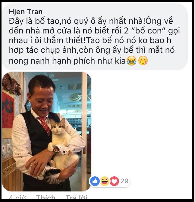 ”Con mèo là của tao. Còn người bế là bố người yêu cũ của tao” (Tiến Vũ).