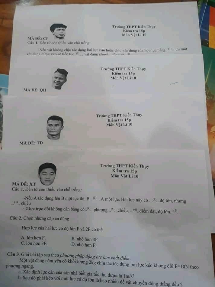 Tiếp tục “hot trend” về đề thi bá đạo này, mới đây trên một trang mạng lớn dành cho giới trẻ có đăng tải một đề thi môn Vật Lý hài hước. Giáo viên dạy môn Vật Lý này chắc chắn là người rất mê bóng đá và hâm mộ các cầu thủ của đội tuyển Việt Nam như Công Phượng, Quang Hải, Tiến Dũng, Xuân Trường nên mới đặt tên mã đề thi là tên của các cầu thủ này.