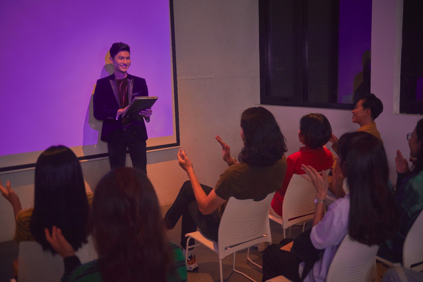 Không ai nghĩ rằng anh chàng cách đây vài tháng còn thất vọng về chính bản thân mình, không nói được một câu gãy gọn, rõ nghĩa, giờ đây có thể tự tin cầm chiếc Pavilion đứng trước khán phòng, thu hút sự chú ý của tất cả mọi người nhờ phong cách hiện đại, trẻ trung và duyên dáng.