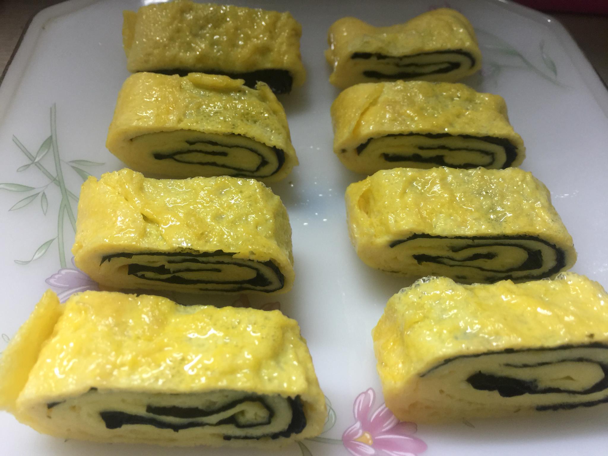 Hình ảnh món trứng cuộn xúc xích không ra hình thù gì.