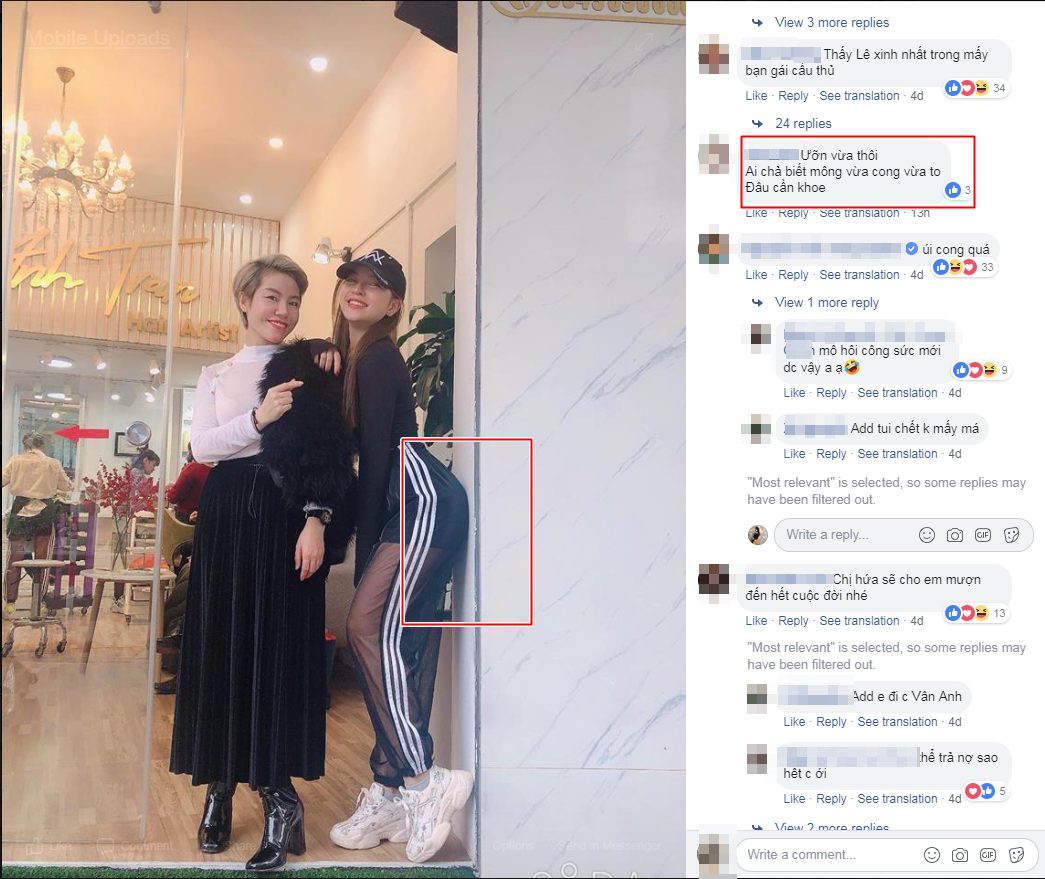 Phía dưới phần bình luận, nhiều cư dân mạng tỏ thái độ ngưỡng mộ vì hình thể của hot girl sau thời gian kiên trì tập gym. Tuy nhiên, rất nhiều người khác lại soi ra chi tiết photoshop lỗi. Tuy bức tường phía sau không cong vênh nhiều nhưng qua đó, dân mạng biết chắc chắn Nhật Lê đã can thiệp chỉnh sửa vòng 3 trước khi up ảnh lên trang cá nhân.