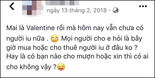 Cứ đến cái ngày này là trên Facebook các anh chị em đua nhau đăng status than thở hay cũng là một cách “thả thính” mà cớ sao ế vẫn hoàn ế.