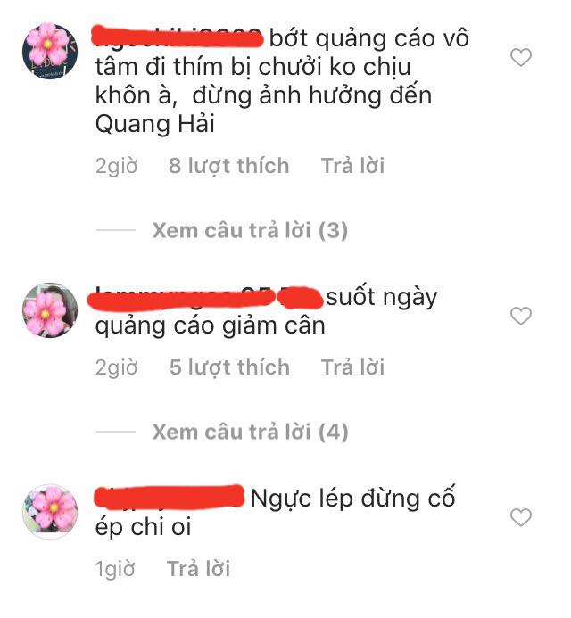 Lập tức dưới phần bình luận, hàng loạt comment chê bai khá nặng lời cho rằng cô nàng đang dựa hơi Quang Hải để nổi tiếng, suốt ngày đi quảng cáo và làm ảnh hưởng đến hình ảnh của bạn trai.