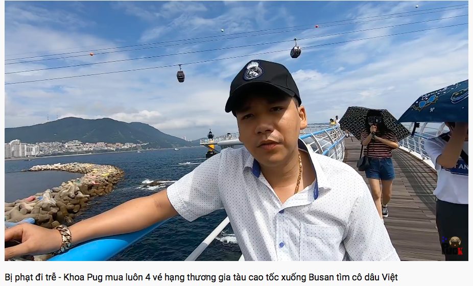 Trong clip, Khoa Pug review về vé hạng thương gia tàu cao tốc xuống Busan “tìm cô dâu Việt”. Anh chàng cho rằng đa số người Hàn Quốc sang Việt Nam mình kiếm tiền rất là nhiều vì bên đây công việc bão hoà, kiếm tiền không được nhiều. “Nên nhiều khi những cô dâu Việt qua lấy chồng Hàn thì ai sẽ lấy những người đó?”.