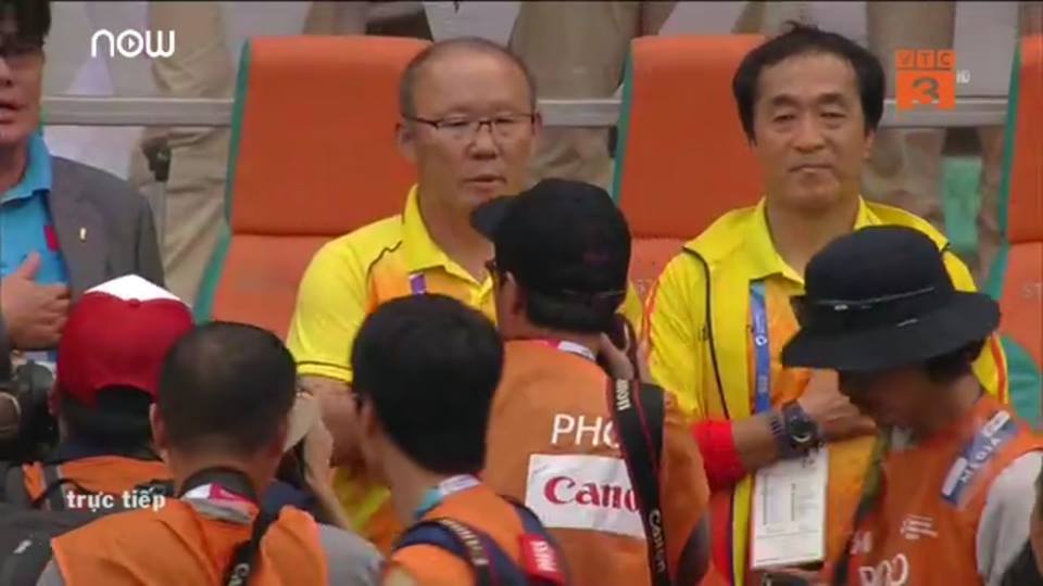 Khi quốc ca Việt Nam vang lên, thầy Park cùng ban huấn luyện đứng ở ngoài sân cũng đặt tay lên ngực hát theo. Trong trận cầu ngày hôm nay, có lẽ ông chính là người duy nhất 2 lần hát Quốc ca.