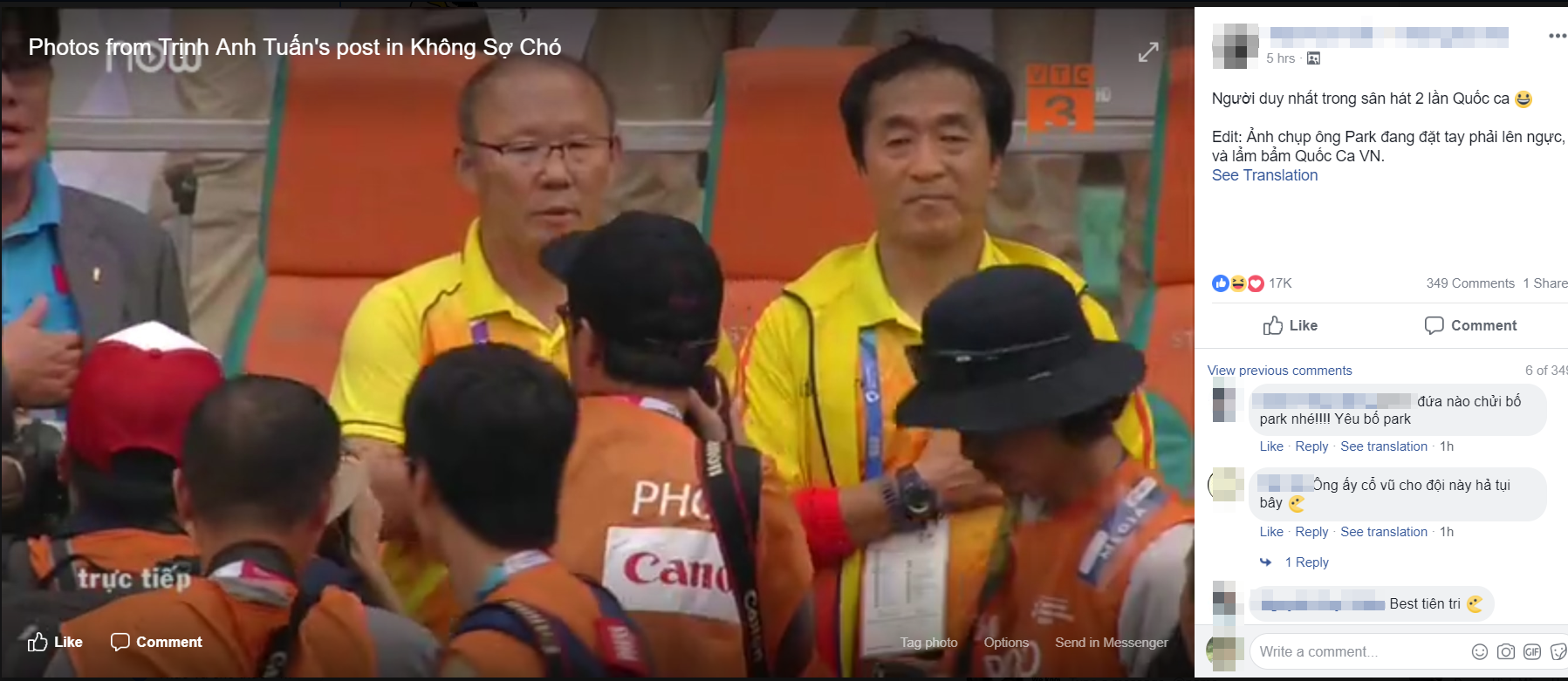 Sau trận đấu lịch sử gặp Hàn Quốc ở bán kết ASIAD 2018 - vòng đấu mà lần đầu tiên Việt Nam bước chân vào - CĐV cả nước rần rần chia sẻ một khoảnh khắc xúc động, đó là lúc thầy Park lặng lẽ hát 2 lần Quốc ca.