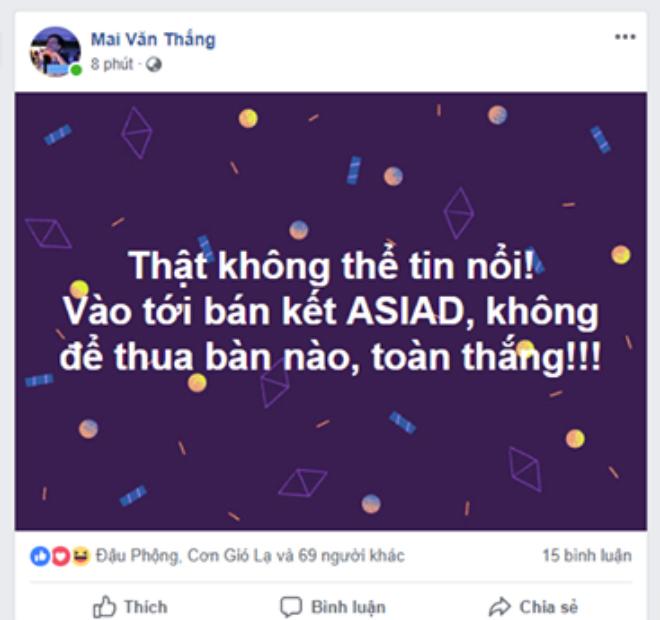 Thực sự còn vô số các status bày tỏ sự xúc động trước tấm vé vào Bán kết ASIAD 2018 của đội tuyển Việt Nam!