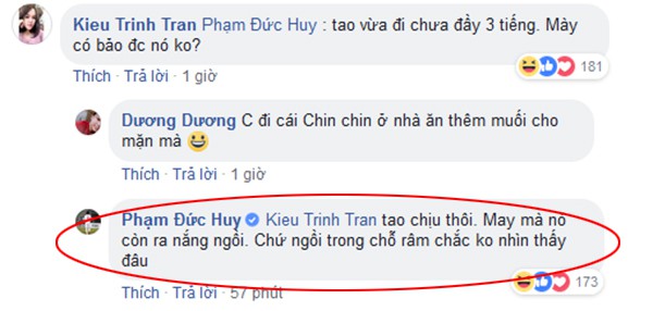 “Tao chịu thôi, may mà nó còn ra nắng ngồi. Chứ ngồi trong chỗ râm chắc không nhìn thấy đâu”, phần bình luận hài hước của Đức Huy.