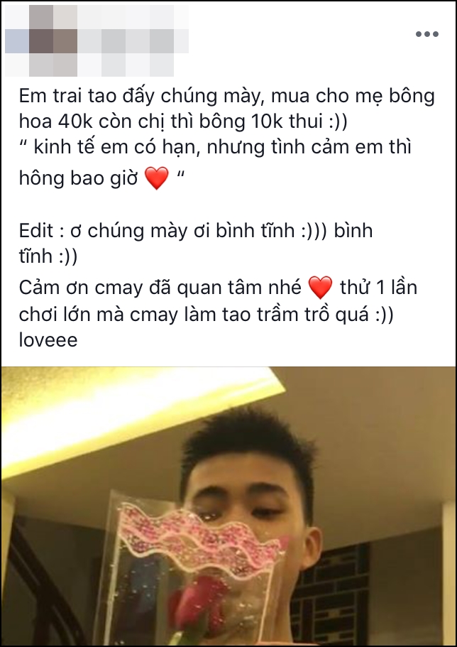 Cậu em đẹp như trai Hàn Quốc tặng chị hoa hồng kèm lời chúc cực ngọt ngào. Nguồn: KSC