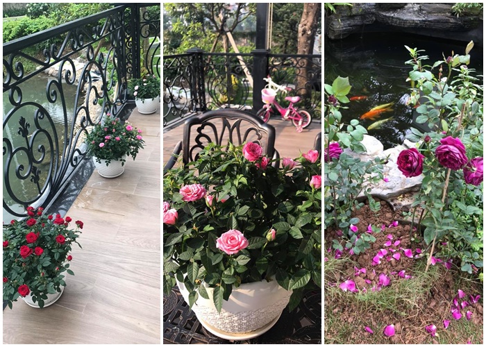 Những bông hoa hồng xinh xắn trồng quanh nhà chính là niềm vui tao nhã hàng ngày của chị Vân Anh cùng các con.