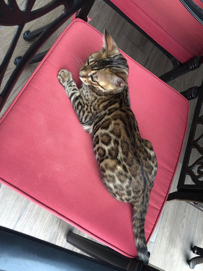 Như clip mới đây nhất, bà mẹ 3 con đăng tải clip chưa đến 1 phút ghi lại hình ảnh chú mèo Tiểu Báo (Belgan) hiếu động với bộ lông mượt mà màu da báo rất dạn dĩ, thò chân xuống nước “vồ” bầy cá đang tụ lại kín đặc mặt nước chờ ăn. Dòng caption đi kèm:“Tiểu Báo nhà em ngày nào cũng rình ở sông, có lúc phi cả xuống sông, nói không ai tin” là đủ để thấy được rằng chị yêu quý và cưng chiều chú mèo nhỏ của gia đình đến thế nào.