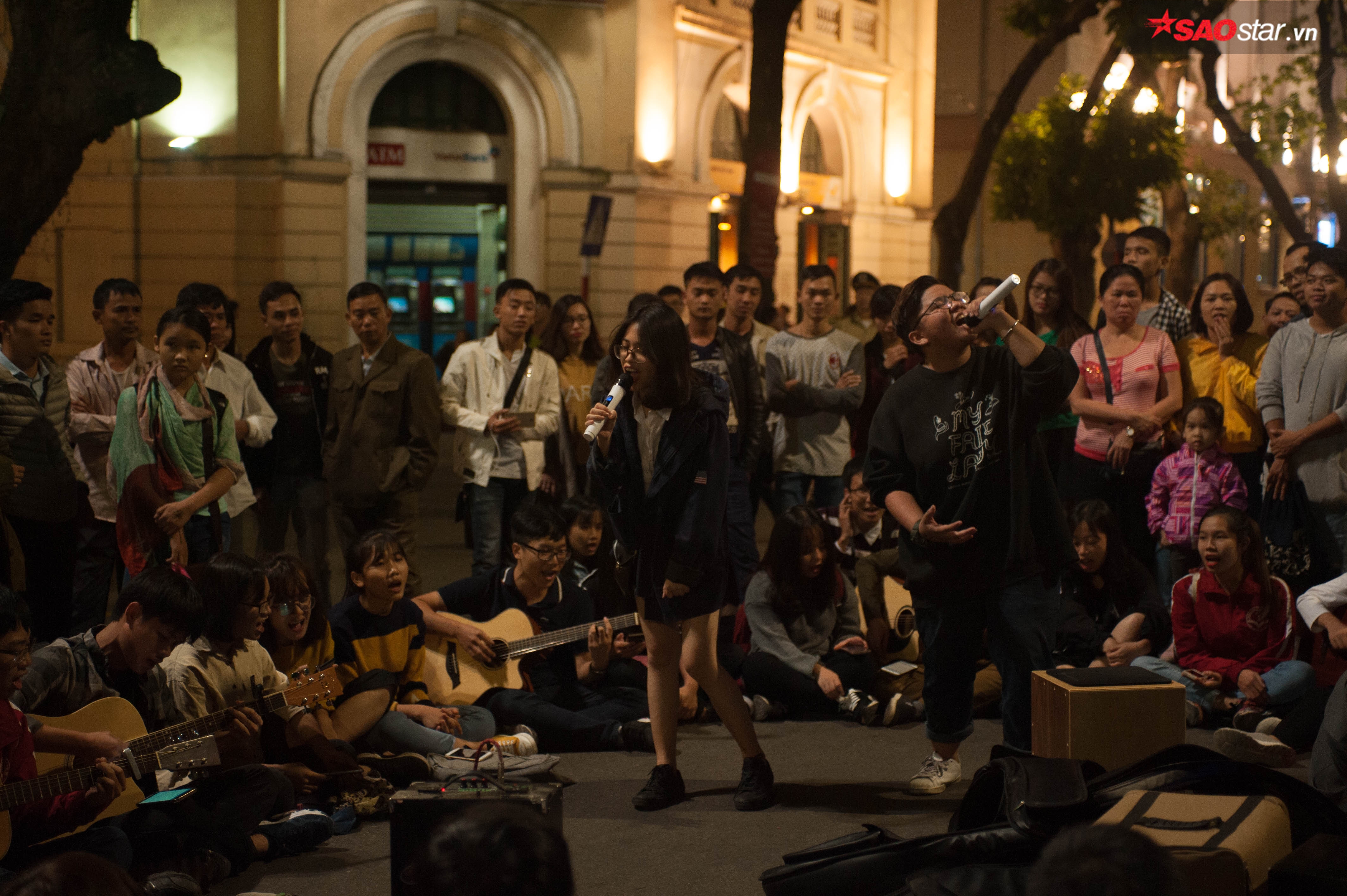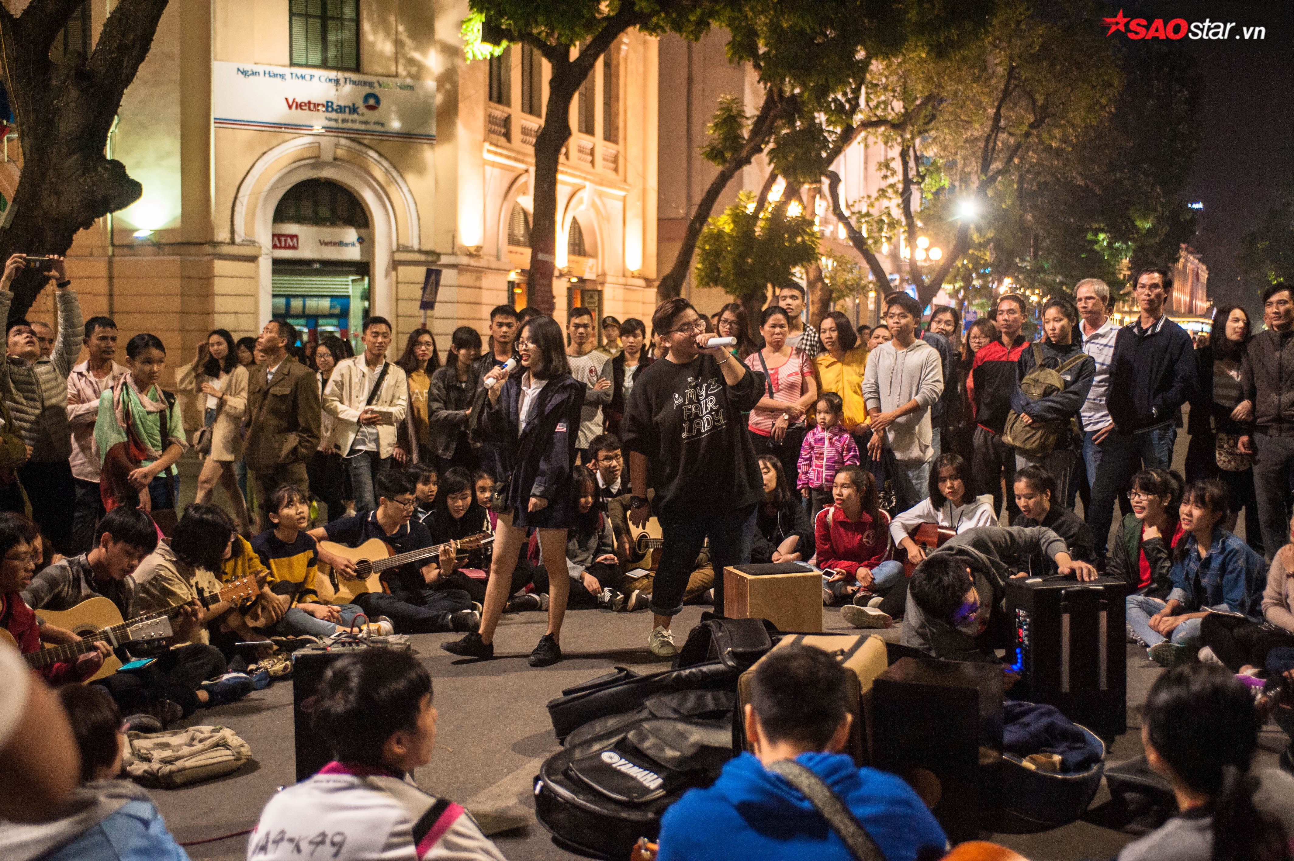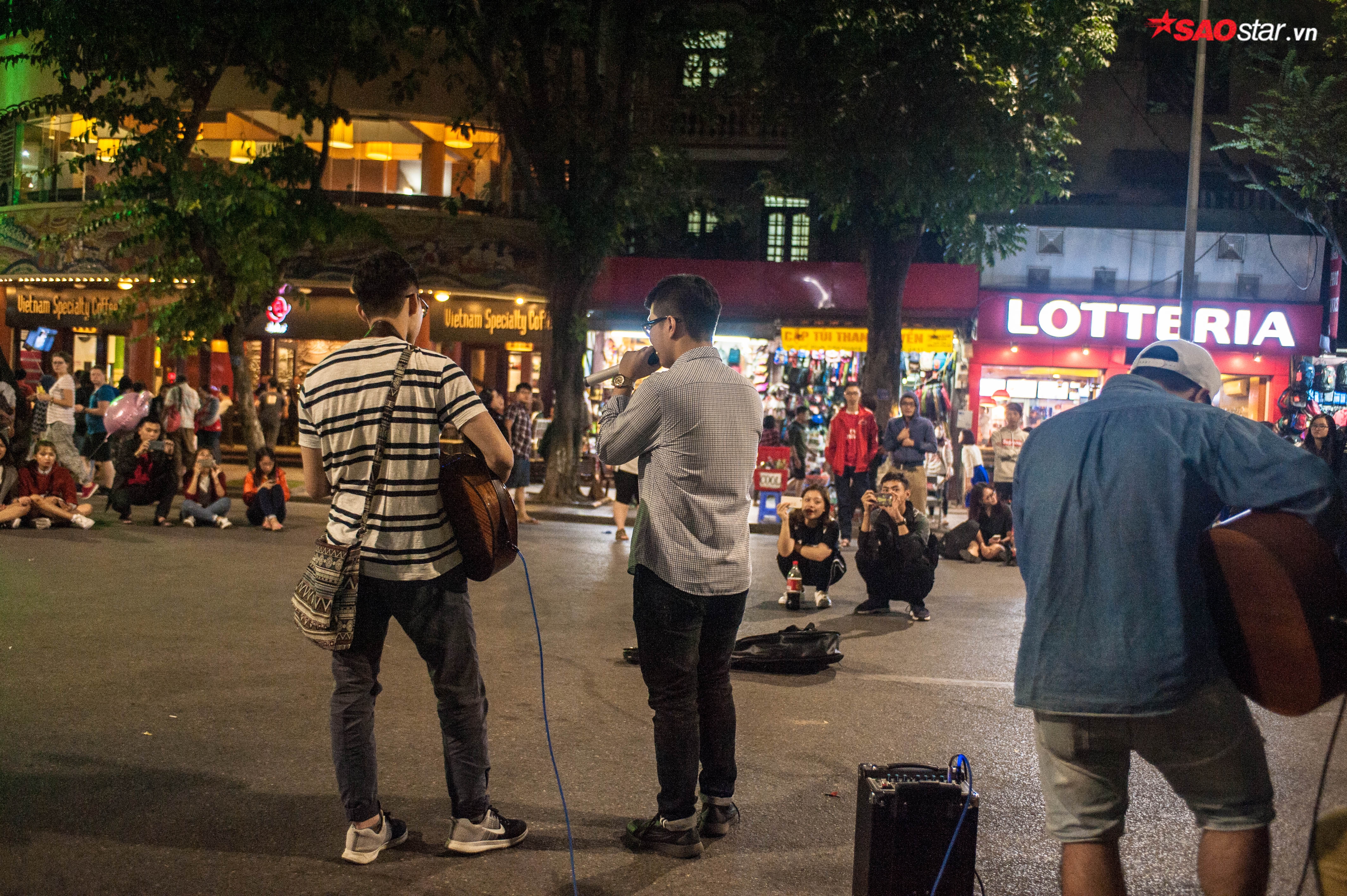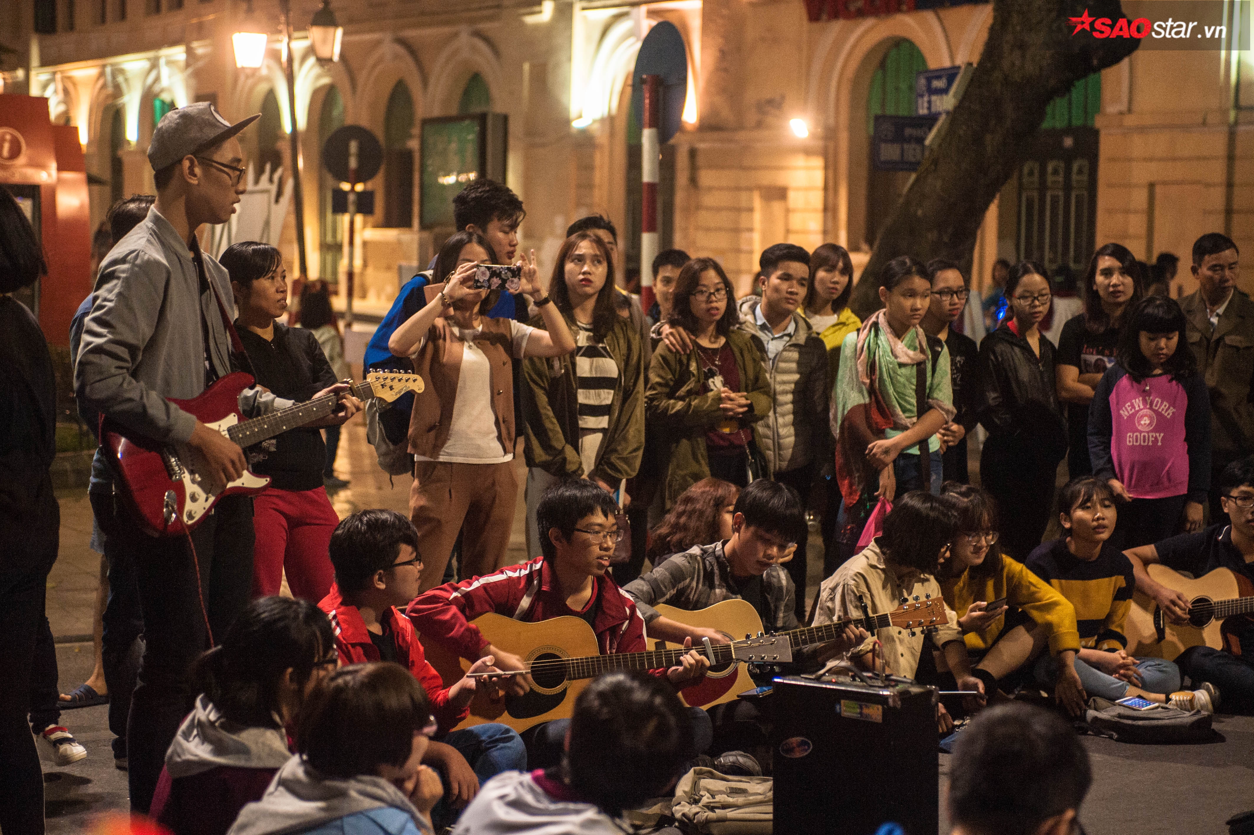 Cứ đến khoảng 20h30 tối thứ 6, phố đi bộ quanh hồ Gươm lại chuẩn bị đón một bữa tiệc âm nhạc đường phố kéo dài suốt 2 ngày, 3 đêm. Trước giờ biểu diễn khoảng 30 phút, khu vực ngã tư có điểm nhạc đường phố đã không còn một chỗ trống. Để xem nhạc, nhiều em nhỏ phải chen lên vòng đầu, ngồi ngay dưới lòng đường chờ đợi.