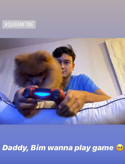 Theo đó, trong ảnh, Văn Lâm đang ôm chú cún cưng và nằm chơi game trên giường. Đây có lẽ là thú vui duy nhất của Văn Lâm trong những “rảnh rỗi bất đắc dĩ”.