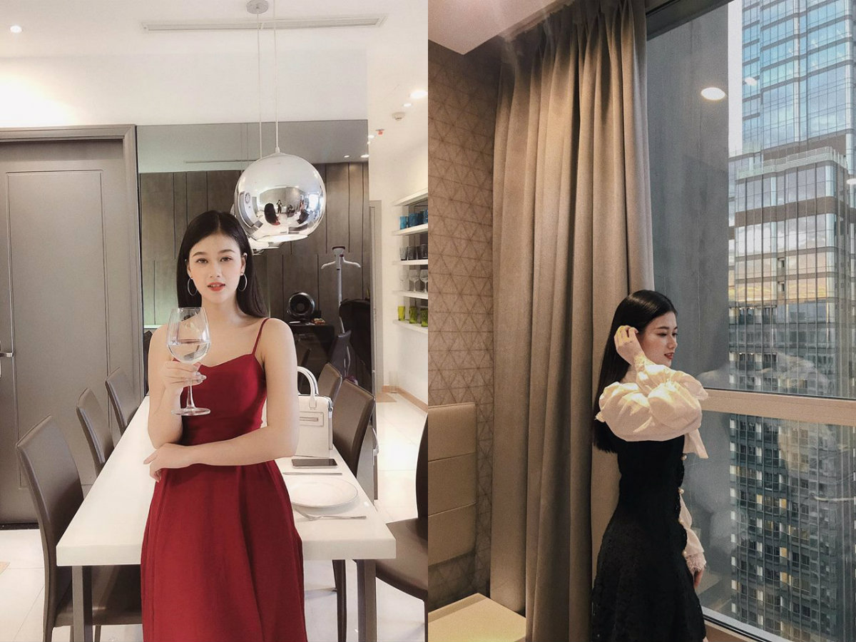 Sindy phương thể hiện nét kiêu sa, đài các của mình khi thả dáng tại căn chung cư cao cấp giữa lòng thành phố Hồ Chí Minh.