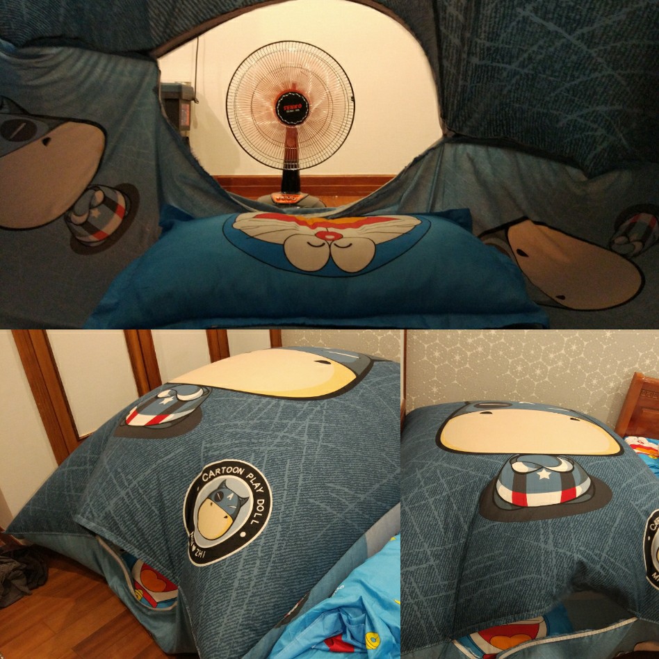 Bên cạnh đó, không ít thành viên cũng vào chia sẻ hình ảnh tương tự học theo bạn gái này. Tài khoản Đ.T hào hứng chia sẻ “bong bóng vỏ chăn” phiên bản hoạt hình của mình.