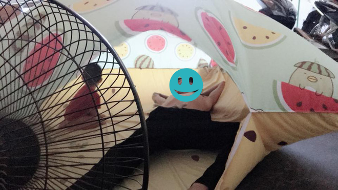 Với vật dụng đơn giản là một chiếc quạt điện mà hầu như nhà nào cũng có và một chiếc vỏ chăn, chỉ thế thôi cô bạn đã sáng tạo ra cách chống nóng độc đáo. Bật quạt và cho gió thổi vào trong vỏ chăn, gió làm căng phồng lên và giữ mát, kết quả là chúng ta chỉ việc chui vào tận hưởng không khí mát lành thôi.