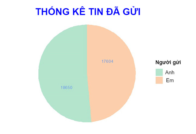 Theo bản đồ thống kê, cô gái đã đếm từ số lượng tin nhắn, tần suất nhắn tin cho đến các ký tự hay sử dụng. Đặc biệt ngày nhắn tin nhiều nhất (425 tin) cô bạn cũng thống kê lại.
