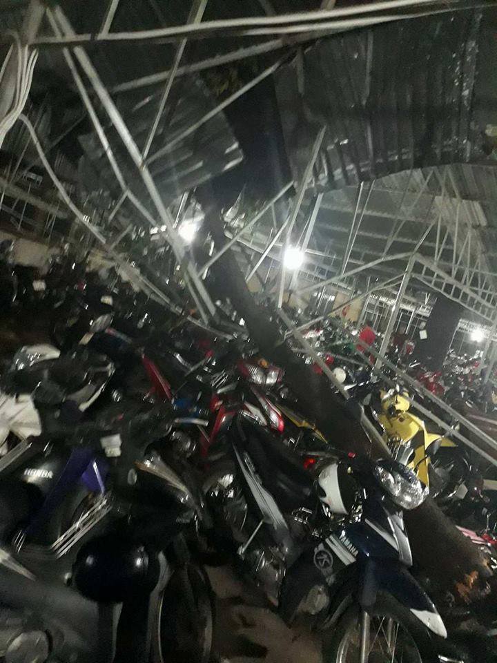 Mái che của nhà xe KTX trường Giao thông vận tải (quận 9, TP. HCM) bị lật tung hoàn toàn.
