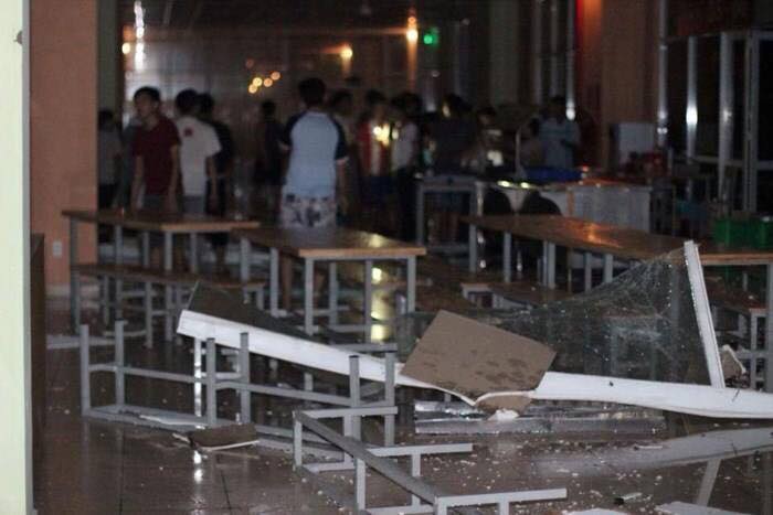 Bàn ghế và kính bị vỡ tại khu B ĐH Quốc gia TP. HCM (Quận Thủ Đức).