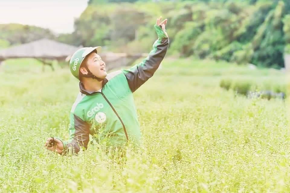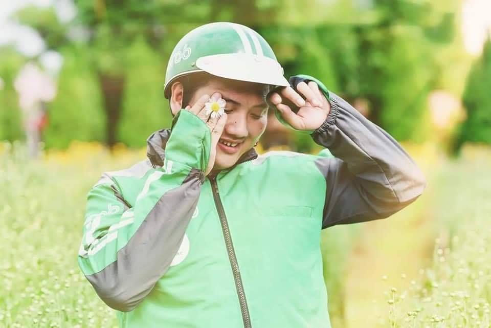 Nụ cười tươi rói của anh Grab khiến hoa họa mi cũng bị lu mờ.