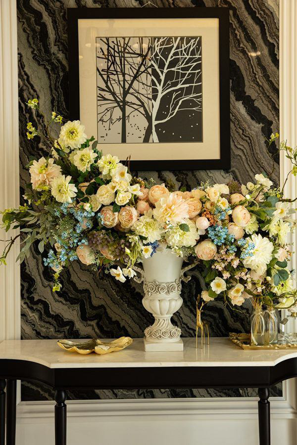 Bên trong căn biệt thự, nội thất được MC Thanh Mai lựa chọn tỉ mỉ để đảm bảo sự hài hòa cho tổng thể. Bên cạnh đó, cô cũng tạo điểm nhấn bằng các bức tranh, lẵng hoa, đèn chùm,… để ngôi nhà thêm ấn tượng, sang trọng.