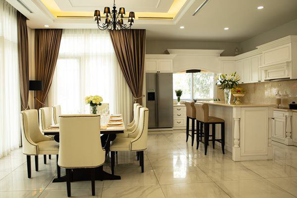 Nhà bếp nối liền phòng khách tạo cảm giác thoáng đãng, rộng rãi