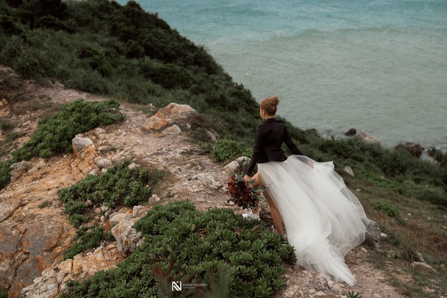 Ngoài ra, cô dâu này cũng thực hiện thêm những concept ảnh cưới khác cũng táo bạo không kém. Concept cô dâu chiến binh được thực hiện trên đỉnh núi cao với gió và những nụ hôn nồng cháy lại khoe được đôi chân dài miên man của cô dâu… Kết hợp đầm voan ngắn với xăng-đan chiến binh hay giày thể thao đều là lựa chọn hợp lí.
