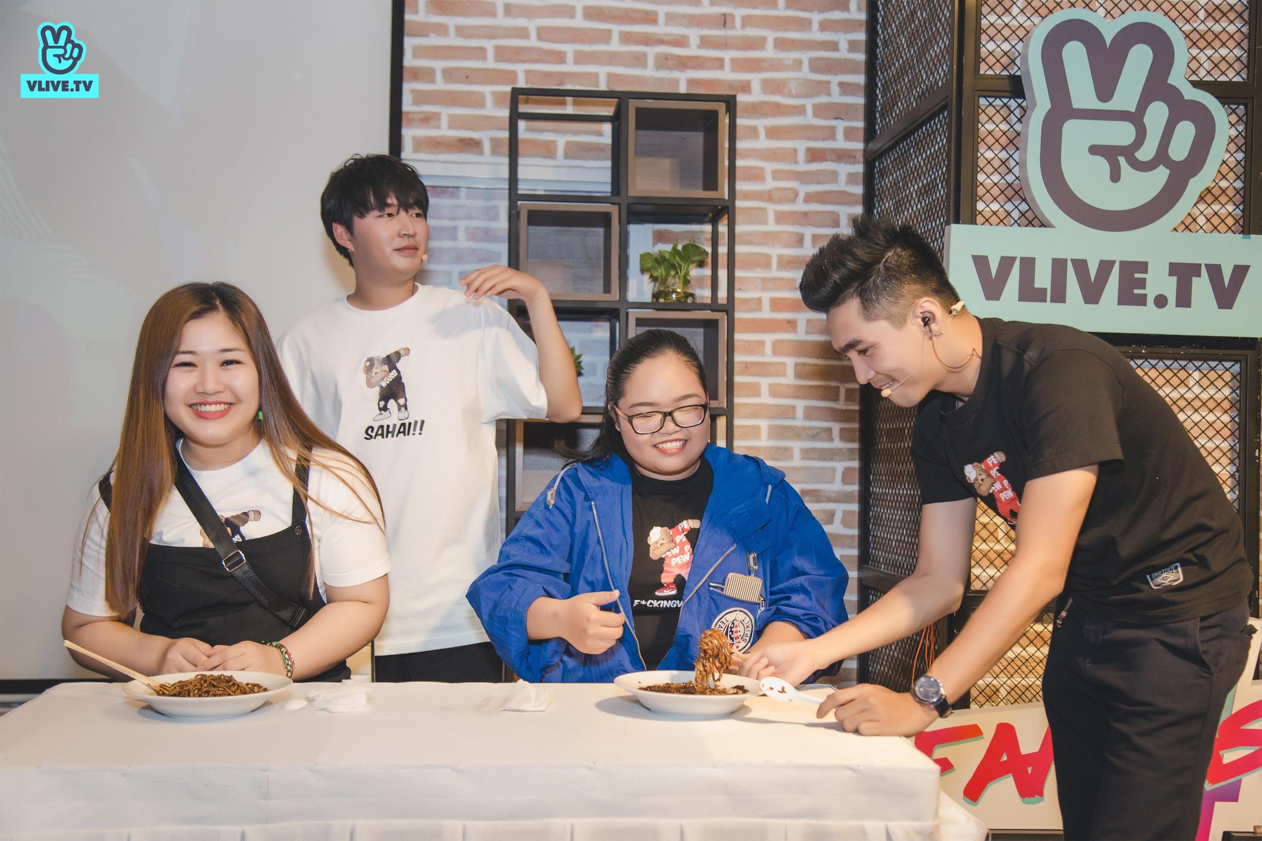 Woossi và PewPew nhiệt tình với người hâm mộ trong phần “đấu ăn”.