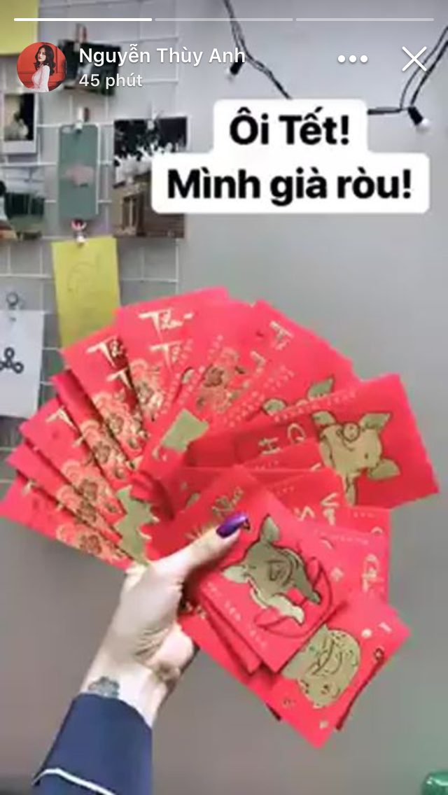 Thùy Anh thì đã chuẩn bị sẵn nhiều phong bao để lì xì
