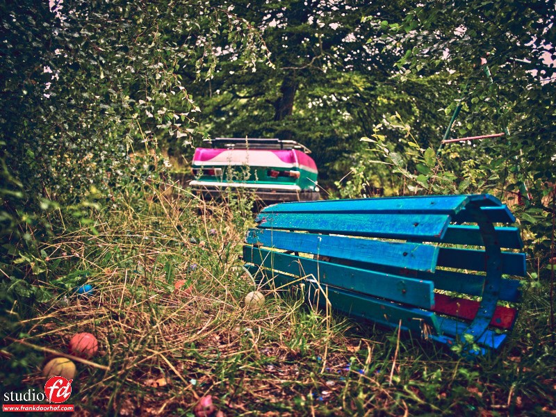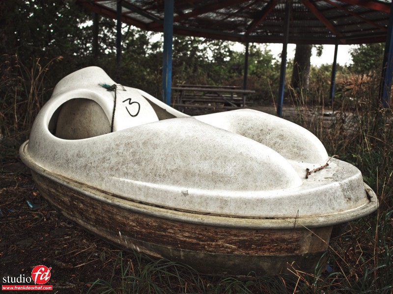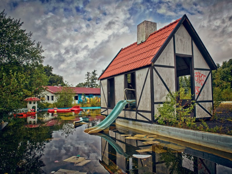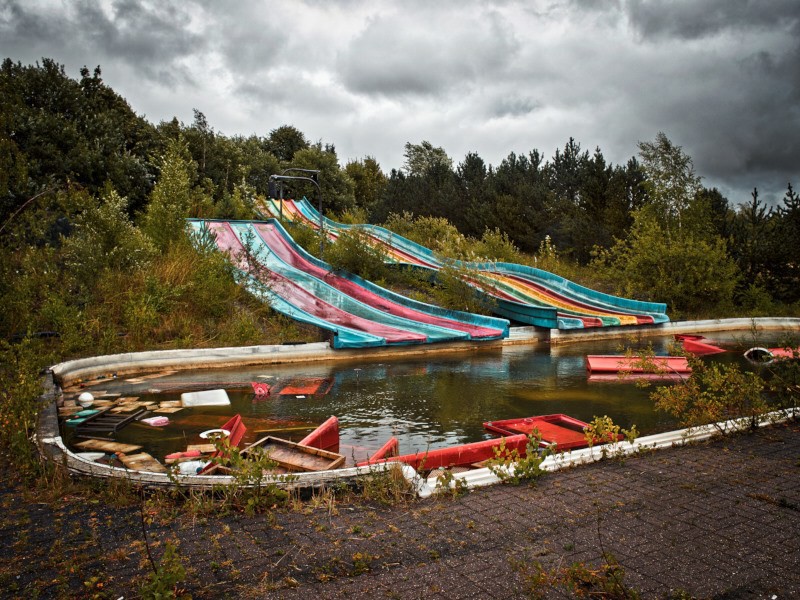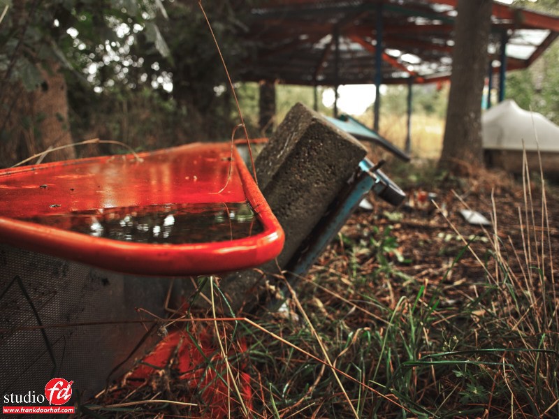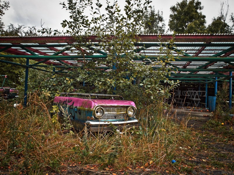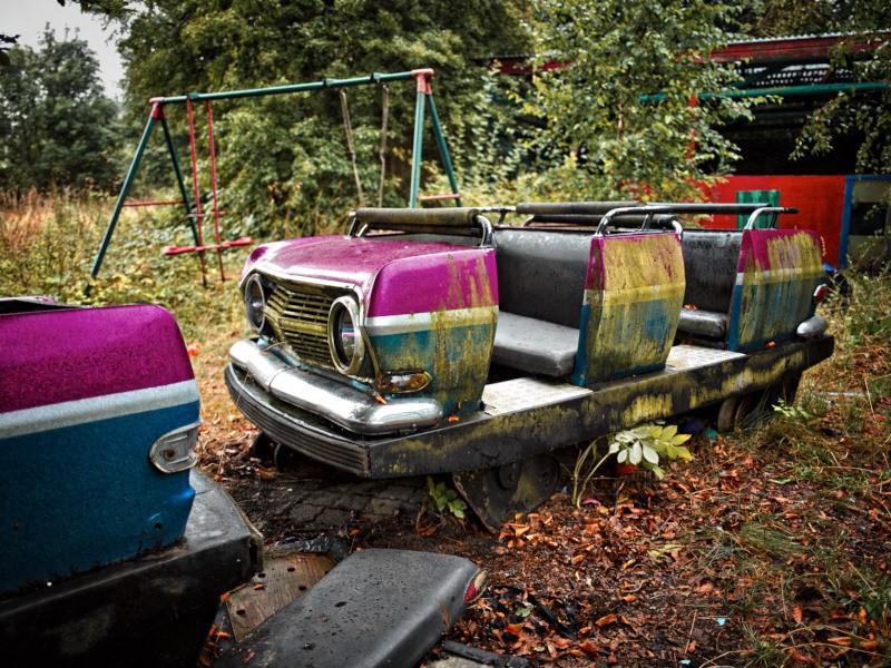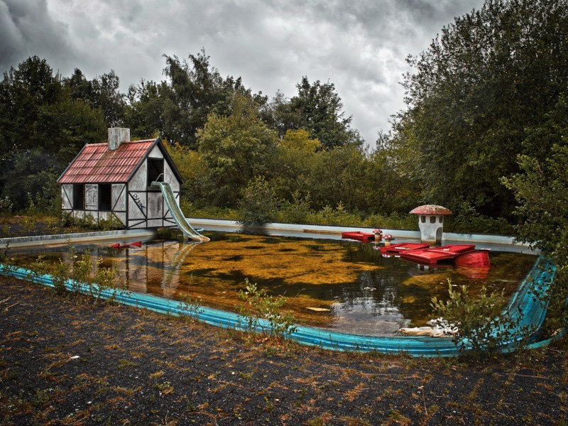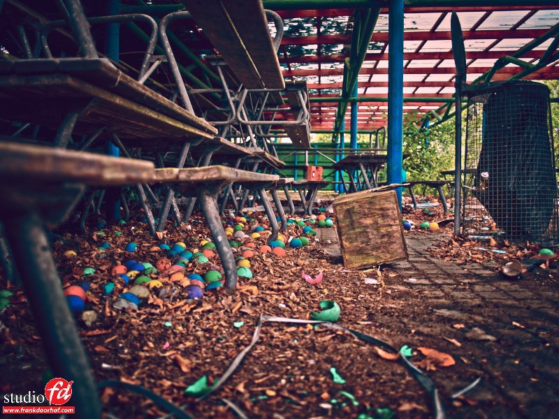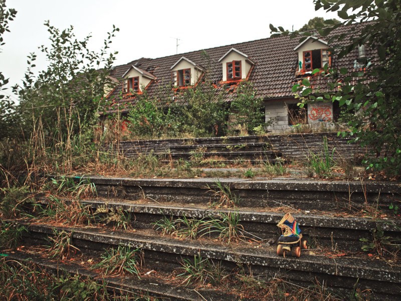 Sau 12 năm, những bụi cỏ đua nhau mọc um tùm, một số món đồ chơi còn sót lại cũ kỹ, hỏng hóc theo thời gian. Ảnh: Frank Doorhof.