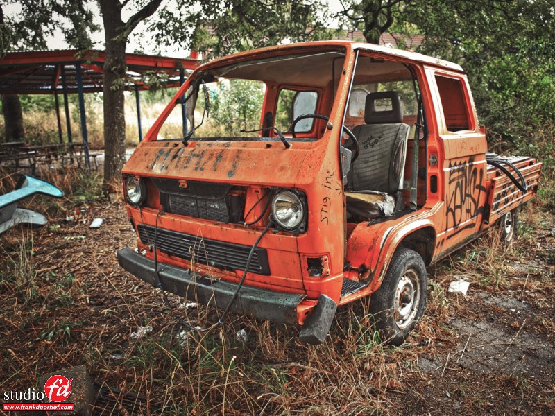 Chiếc xe cũ kỹ như đống sắt vụn nằm im lìm một chỗ.