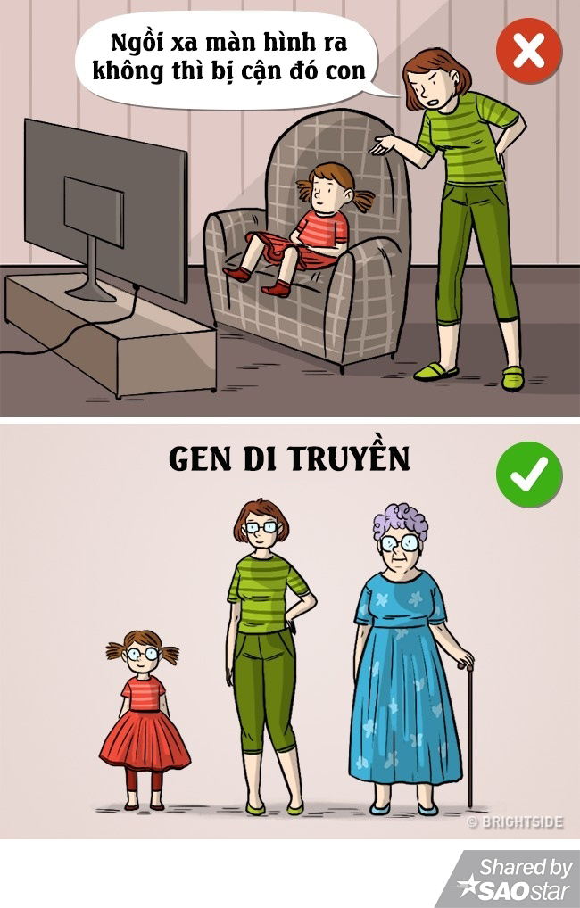 Chắc hẳn ngày bé bạn cũng đã từng hoang mang tột độ khi nghe mẹ nhắc nhở “ngồi xa tivi ra không thì đuôi con mắt bây giờ” đúng không? Cơ mà cận thị có khá nhiều nguyên nhân khác nhau, không riêng gì việc ngồi gần xem tivi đâu nha.