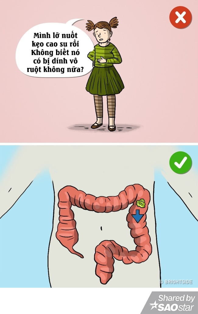 Nếu bạn nuốt chewingum thì ruột sẽ tắc nghẽn