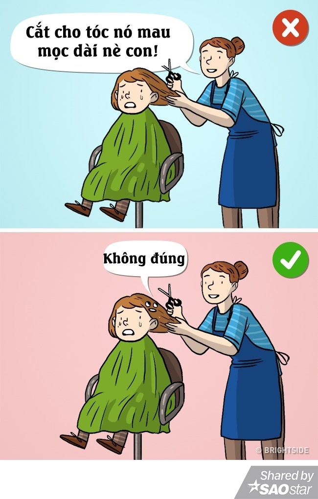 Thực tế mà nói, khả năng tăng trưởng của tóc không phụ thuộc vào số lần cắt tóc. Vì thế, không thể nào có chuyện “Tóc con sẽ mọc rất nhanh, nếu cắt tóc thường xuyên”.