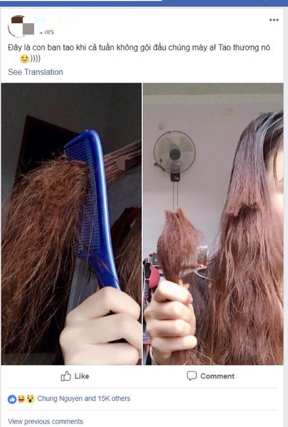 “Ôi lười gội đầu thì ra tiệm gội chứ, ai lại để tóc thế này”, bạn N.T viết.