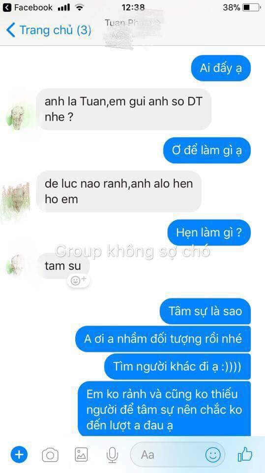 Thậm chí, thanh niên này còn chủ động nhắn tin cho bạn gái khác để xin số điện thoại để hẹn hò tâm sự. Thế nhưng, cô gái này nhận thấy có gì đó không ổn nên đã từ chối rất thẳng thừng khiến thanh niên này không nói được gì.
