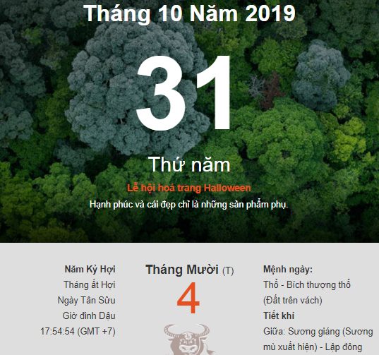 Lễ Halloween năm 2019 sẽ rơi vào ngày thứ Năm.