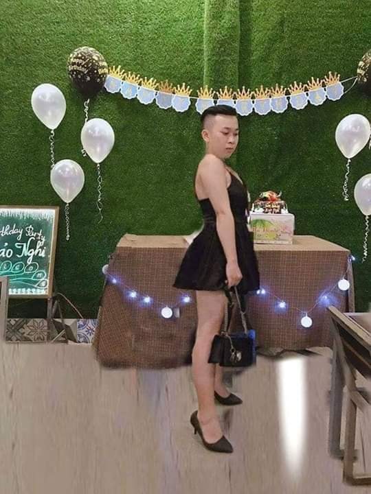 Theo tấm hình đầu tiên được chủ thớt nhờ thì anh này muốn xóa hình cô bạn mặc váy đen bên cạnh để có tấm ảnh chụp một mình tại bữa tiệc sinh nhật. Tuy nhiên không biết vô tình hay cố ý, một cư dân mạng đã xóa cô nàng trên thật nhưng lại ghép thân hình của cô ấy vào chủ thớt. Để rồi chủ thớt vẫn giữ gương mặt thần thái ngời ngời, ai dè lại mặc váy và đi giày cao gót!