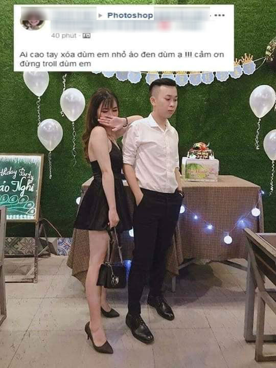 Mới đây, một anh chàng lên mạng nhờ mọi người xóa giúp hình cô gái mặc váy đen bên cạnh trong một bữa tiệc sinh nhật. Ngay lập tức cư dân mạng đã cho ra sản phẩm “cười ra nước mắt”.