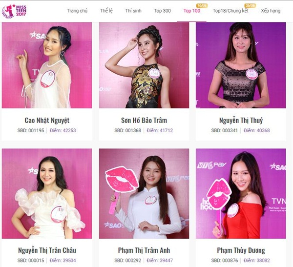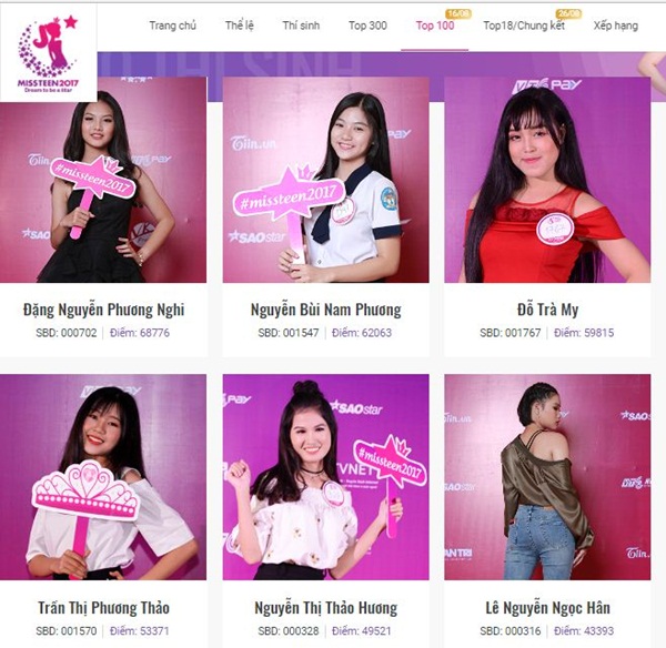 BXH TOP 12 được bình chọn cao nhất Miss Teen 2017:
