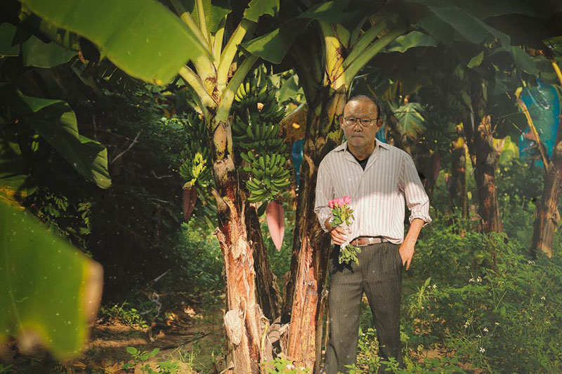 Trong bộ sưu tập này, cả HLV Park Hang Seo và các cầu thủ đều trở thành những “chàng thơ” bên bụi chuối bờ ao giản dị, chân chất đậm màu làng quê Việt.