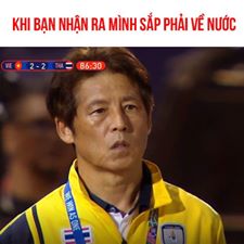 Biểu cảm thẫn thờ của HLV Thái Lan cũng không khiến cộng đồng mạng “nương tay”.