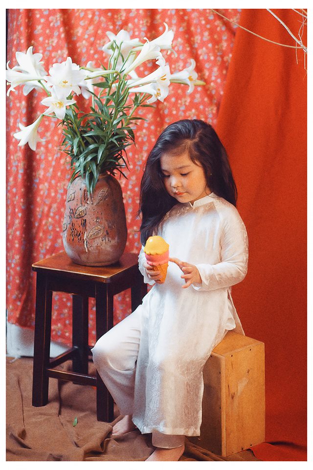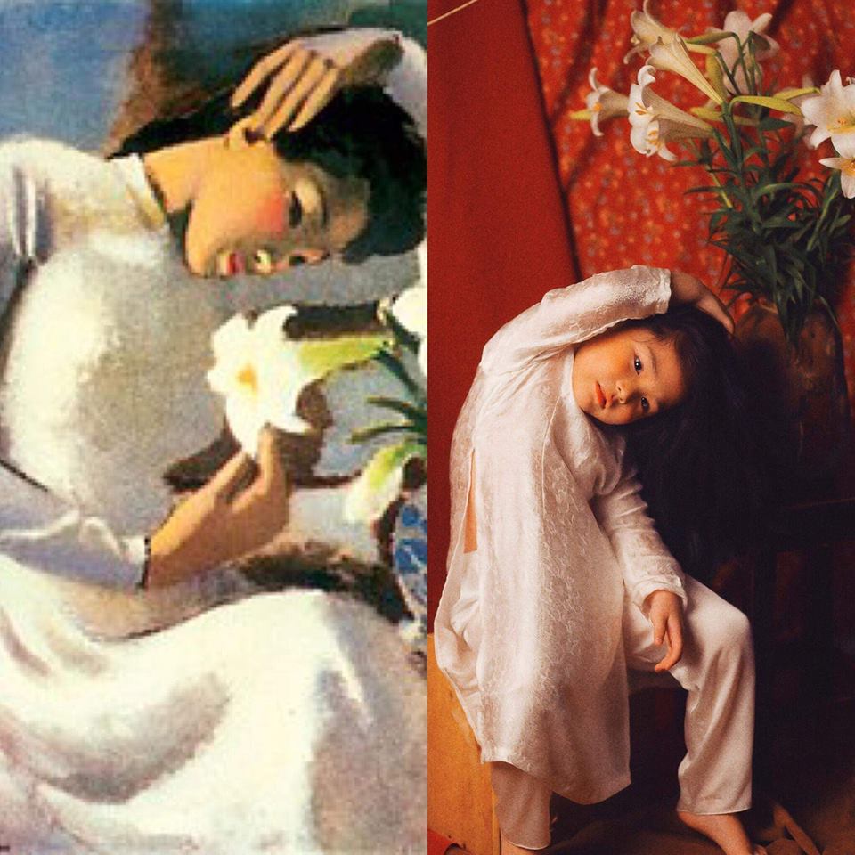 Mới đây, một tài khoản đăng tải loạt hình ảnh một cô bé đáng yêu mặc áo dài và tạo dáng theo phong cách “Thiếu nữ bên hoa huệ” 'đốn tim' cư dân mạng.