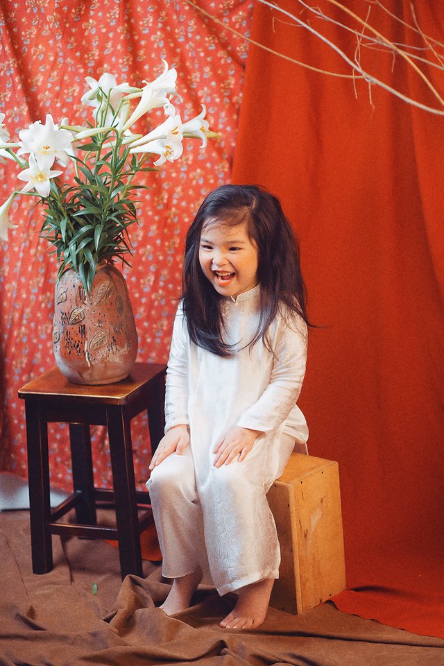 “Nhân một ngày đẹp dời, chị tôi - người mẹ kiên trì, bền bỉ đi tìm một bộ ảnh NGHIÊM TÚC cho con mình, mạnh dạn đưa Mầm đi làm một bộ thiếu nữ bên hoa.