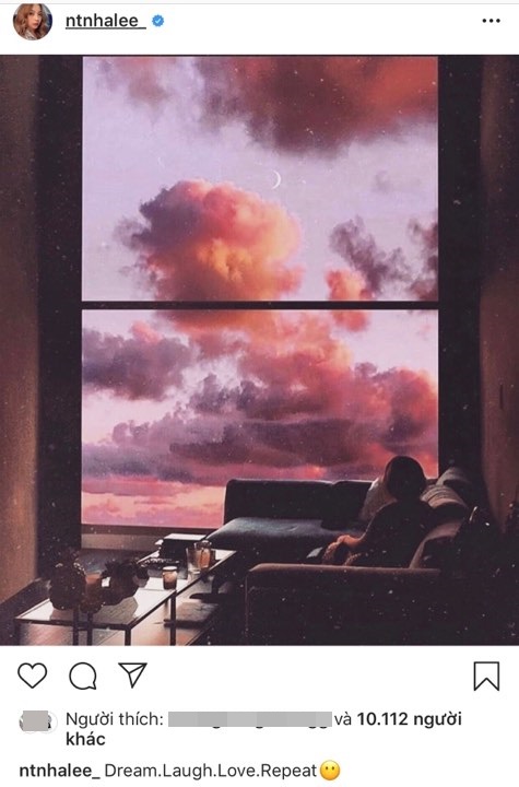 Cách đây vài ngày, Nhật Lê đăng tải lên trang cá nhân bức ảnh với caption: “Dream. Laugh. Love. Repeat” (tạm dịch: Giấc mơ. Nụ cười. Tình yêu. Lặp lại). Cứ ngỡ ấy chỉ là những câu chữ vu vơ của cô nàng nhưng cư dân mạng lại đưa ra suy đoán “nghe vô lý nhưng lại hết sức thuyết phục” rằng nàng WAG đang ngụ ý cặp đôi đã nở nụ cười và quay lại yêu nhau thêm một lần nữa.