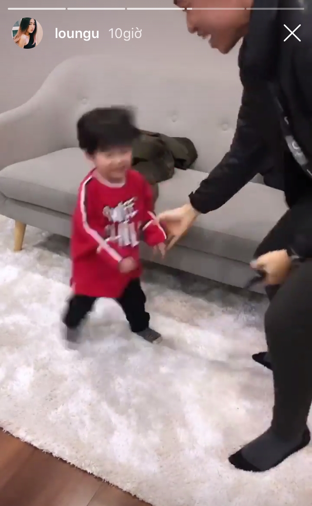 Hot mom Trang Lou khoe cảnh Xoài ăn mừng tuyển Việt Nam chiến thắng. Ảnh: instagram