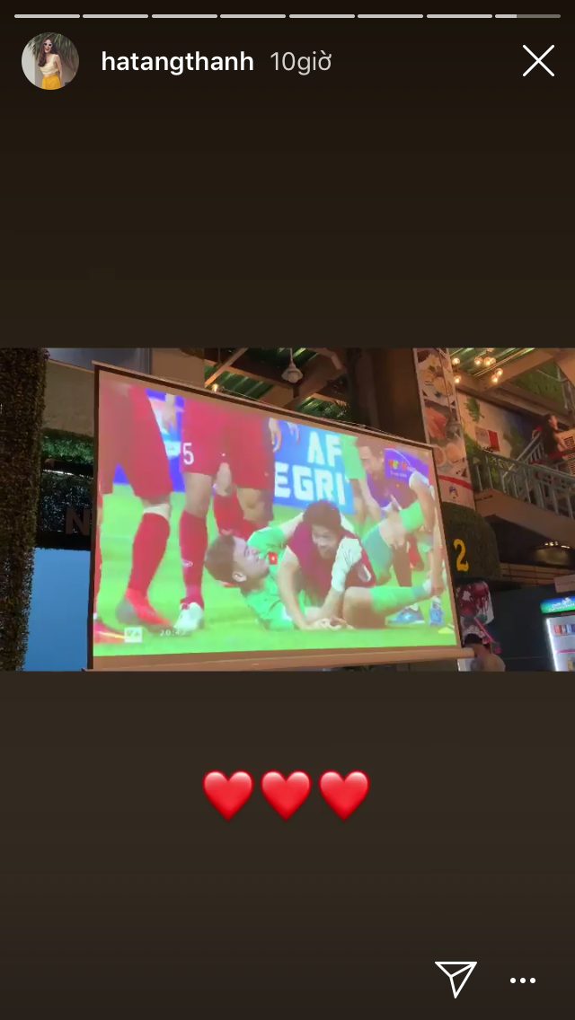 Là cổ động viên nhiệt tình của tuyển Việt Nam nên Tăng Thanh Hà cùng ông xã vô cùng hạnh phúc khi chứng kiến chiến thắng của đội tuyển. Ảnh: instagram