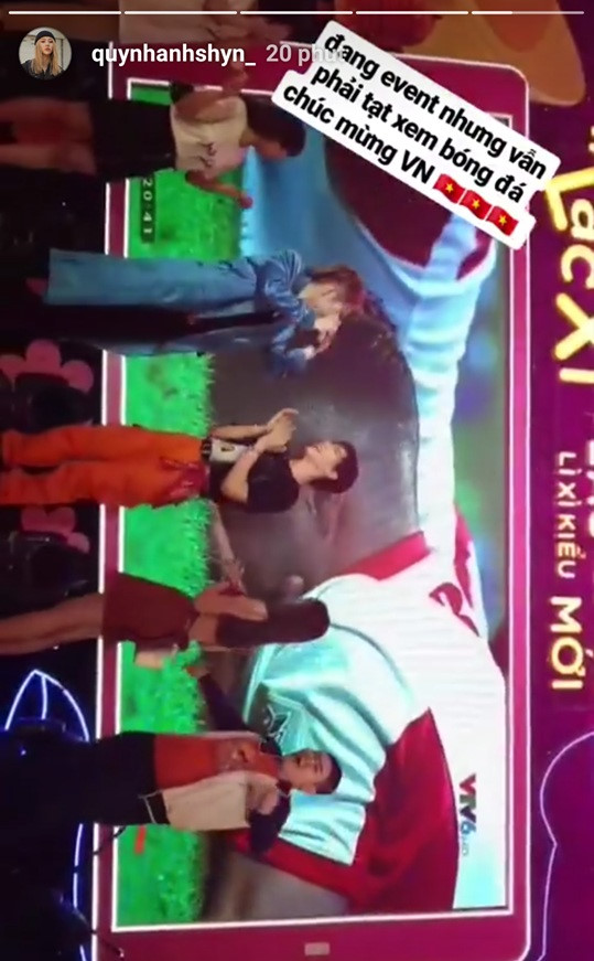 Cô nàng Quỳnh Anh Shyn dù bận rộn nhưng cũng không quên xem bóng đá. Ảnh: Instagram